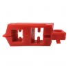 The snap-on circuit breaker lockout, locks out 120V breakers with holes in the switch arm. No tools are required for installation. The two ends of the device snap together, which can then be locked out with a lockout padlock or hasp.